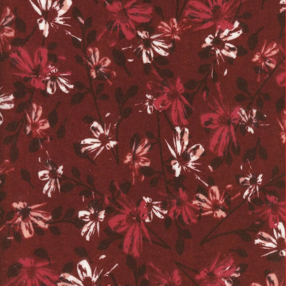 Flowers on Burgandy Flannel