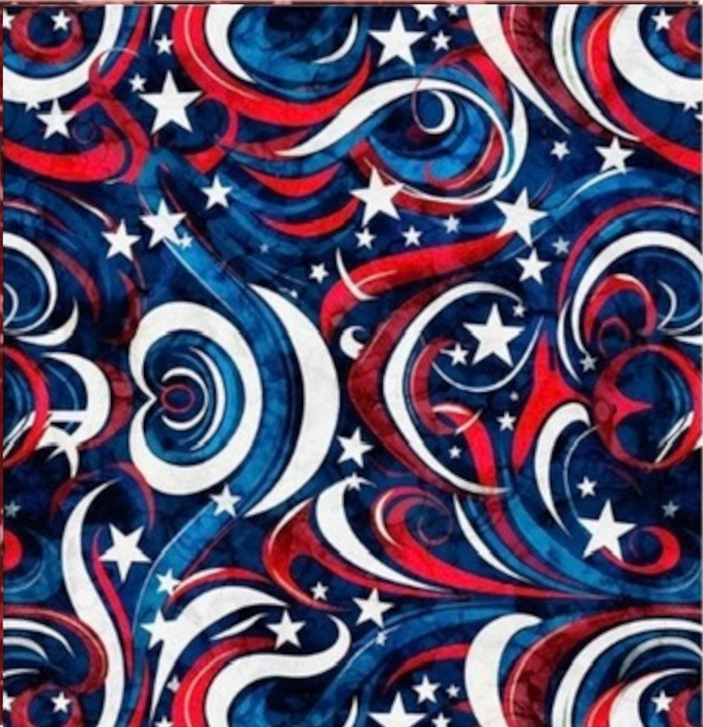 3 yards of Red White and Blue Swirls quilt backings will fit the back of a queen-size quilt, above all, “NO SEAMS”. Choose from other shaded designs 108″ Quilt Backing. Using 108″ wide backings saves you money and time. How wonderful!